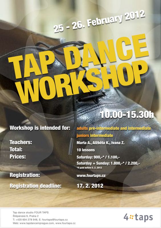 If you prefer payment in cash, you should pay to the instructors within any Four taps lessons at latest until 17.2.2012.